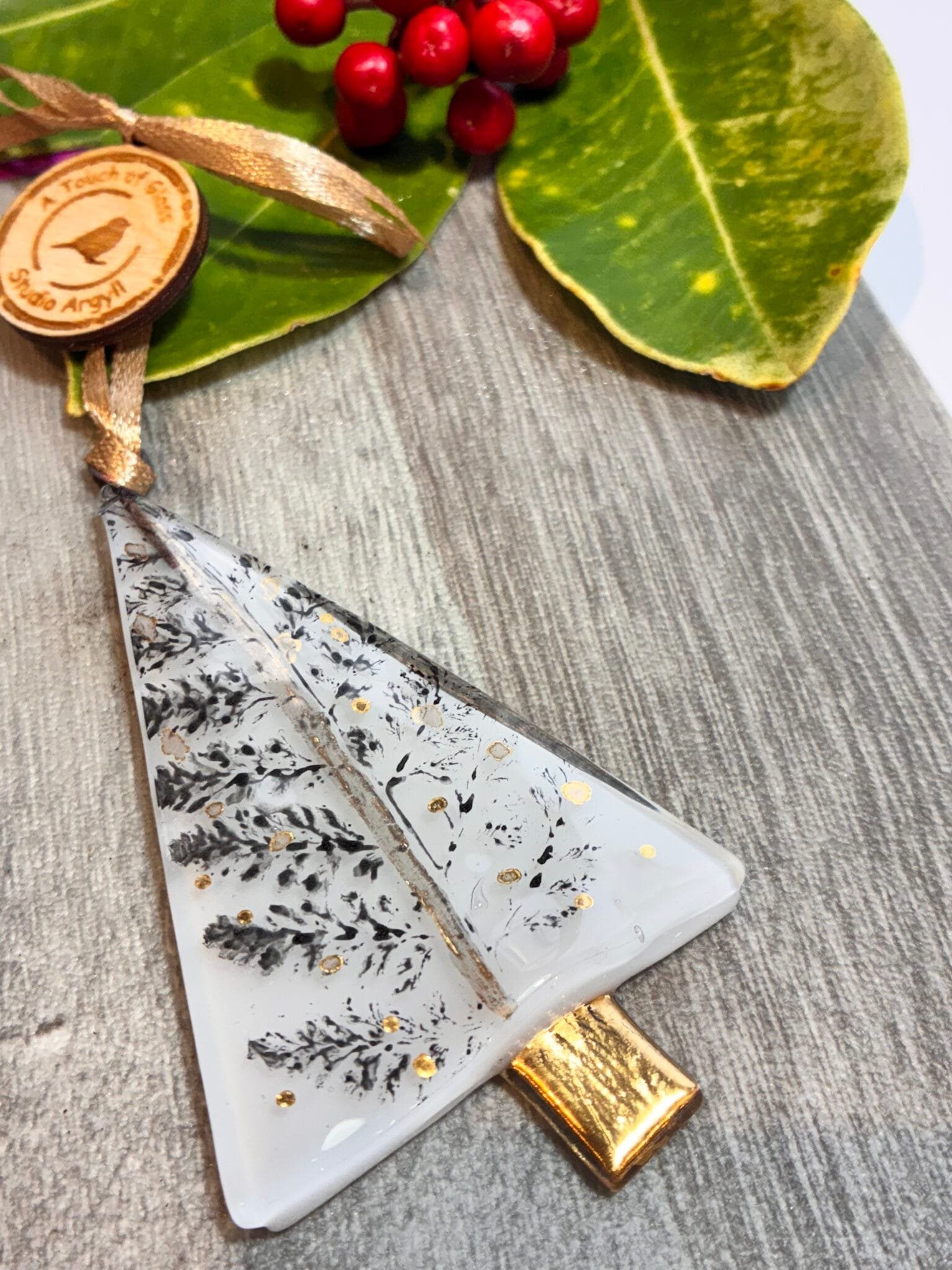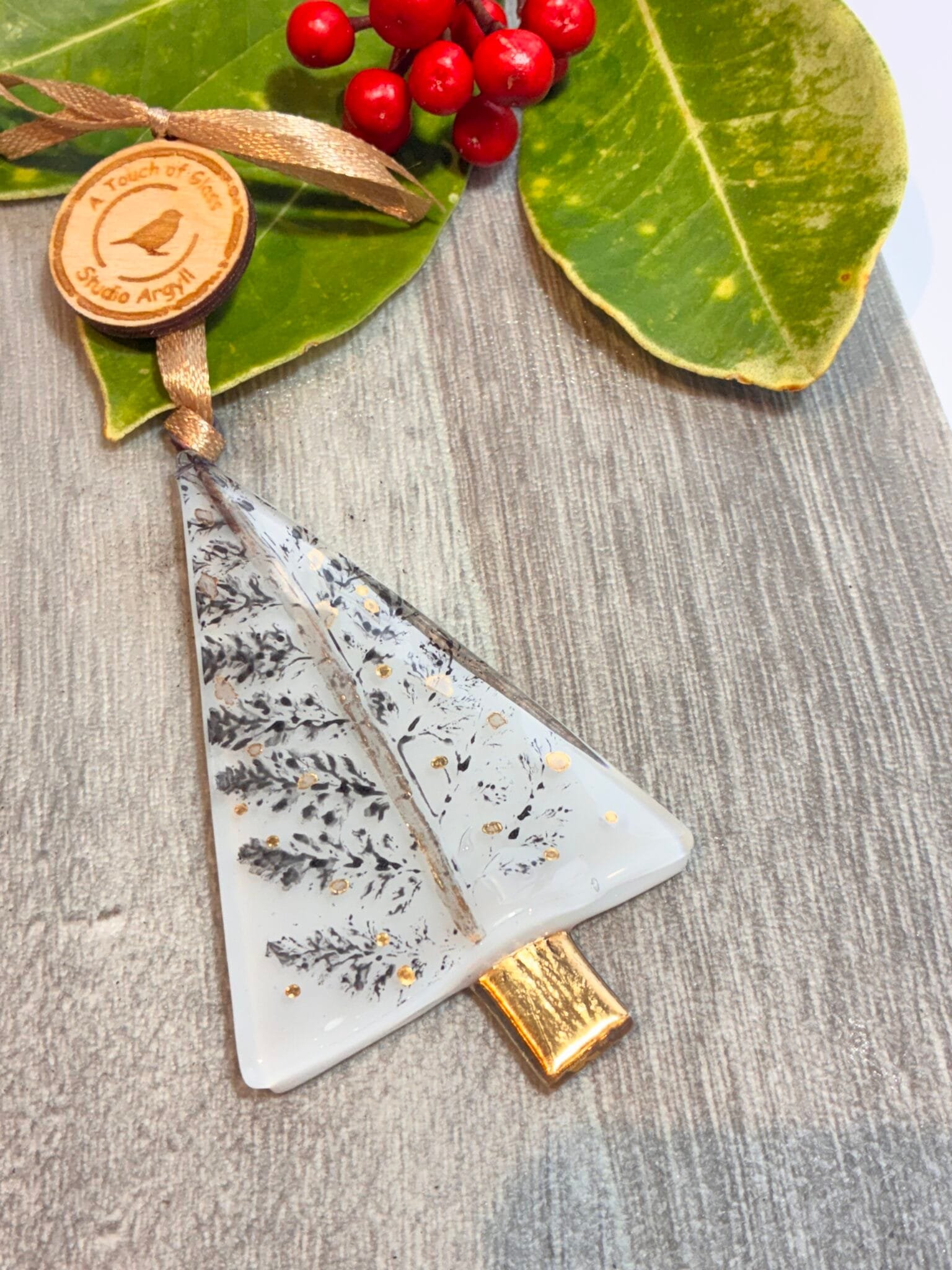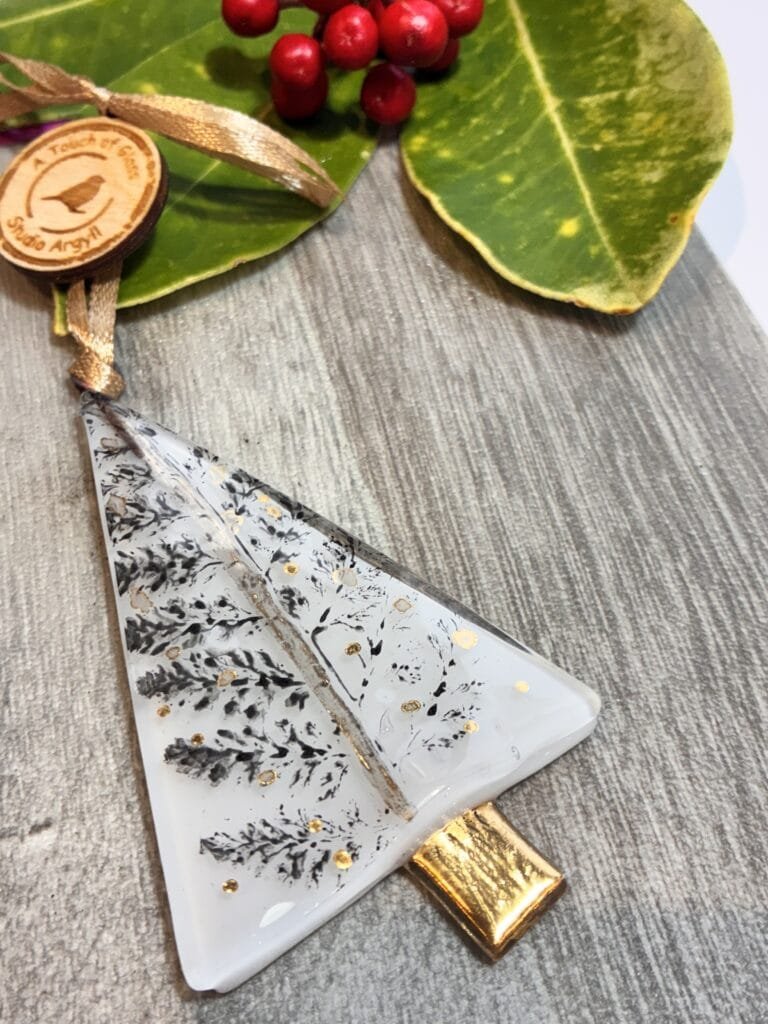 Our sweet new Christmas tree decoration, with gold trunk and a little bit of gold detail.