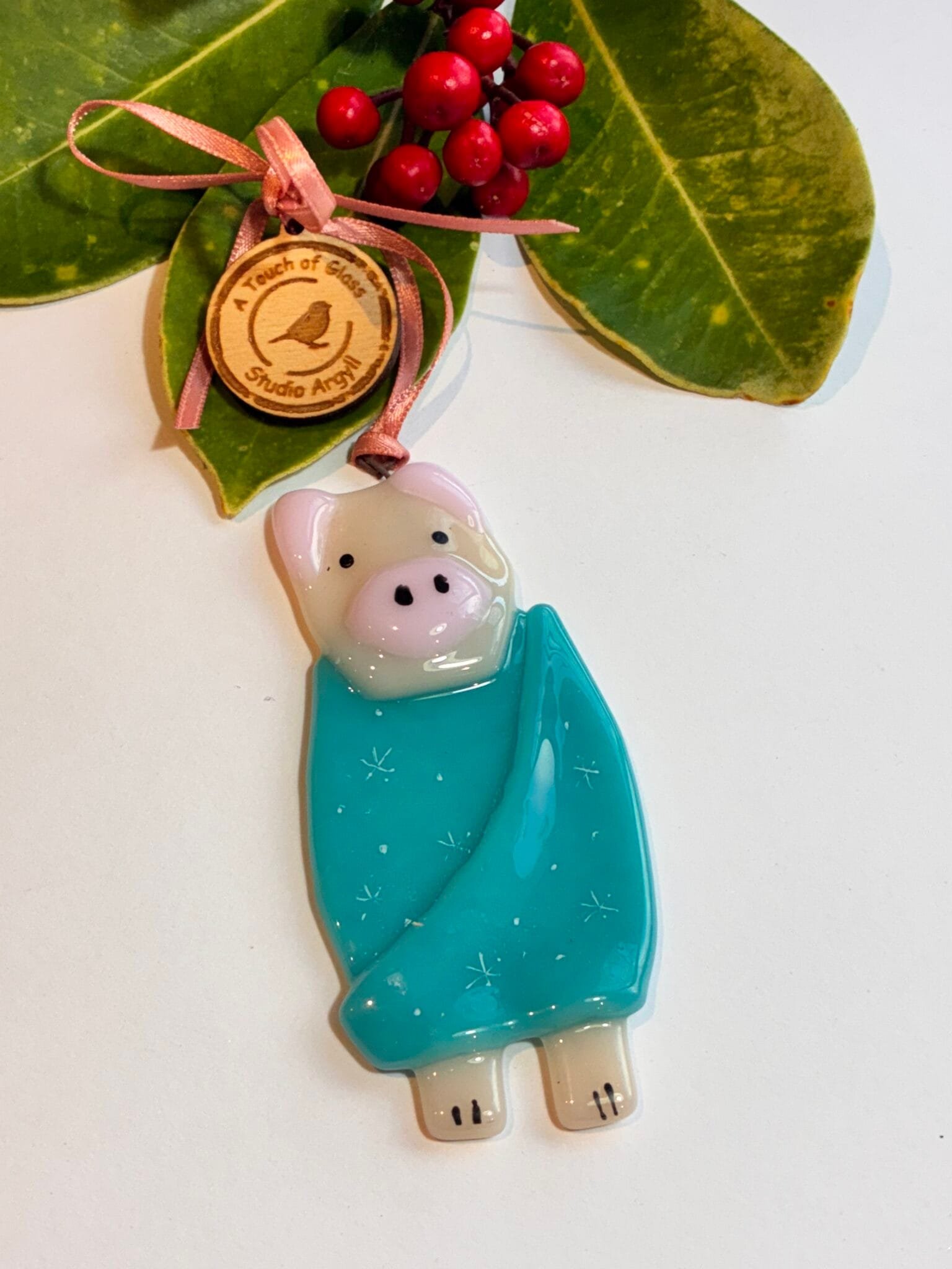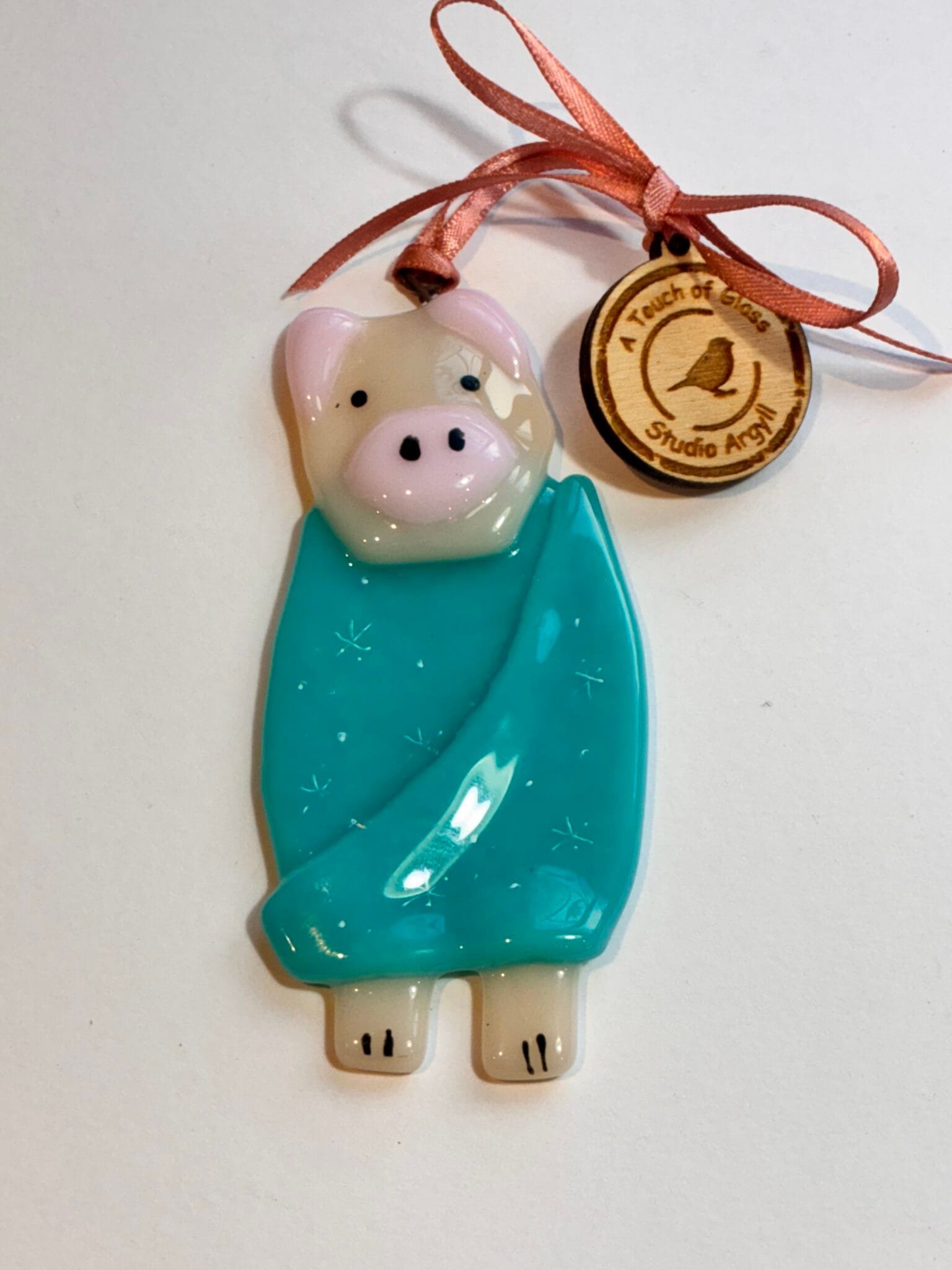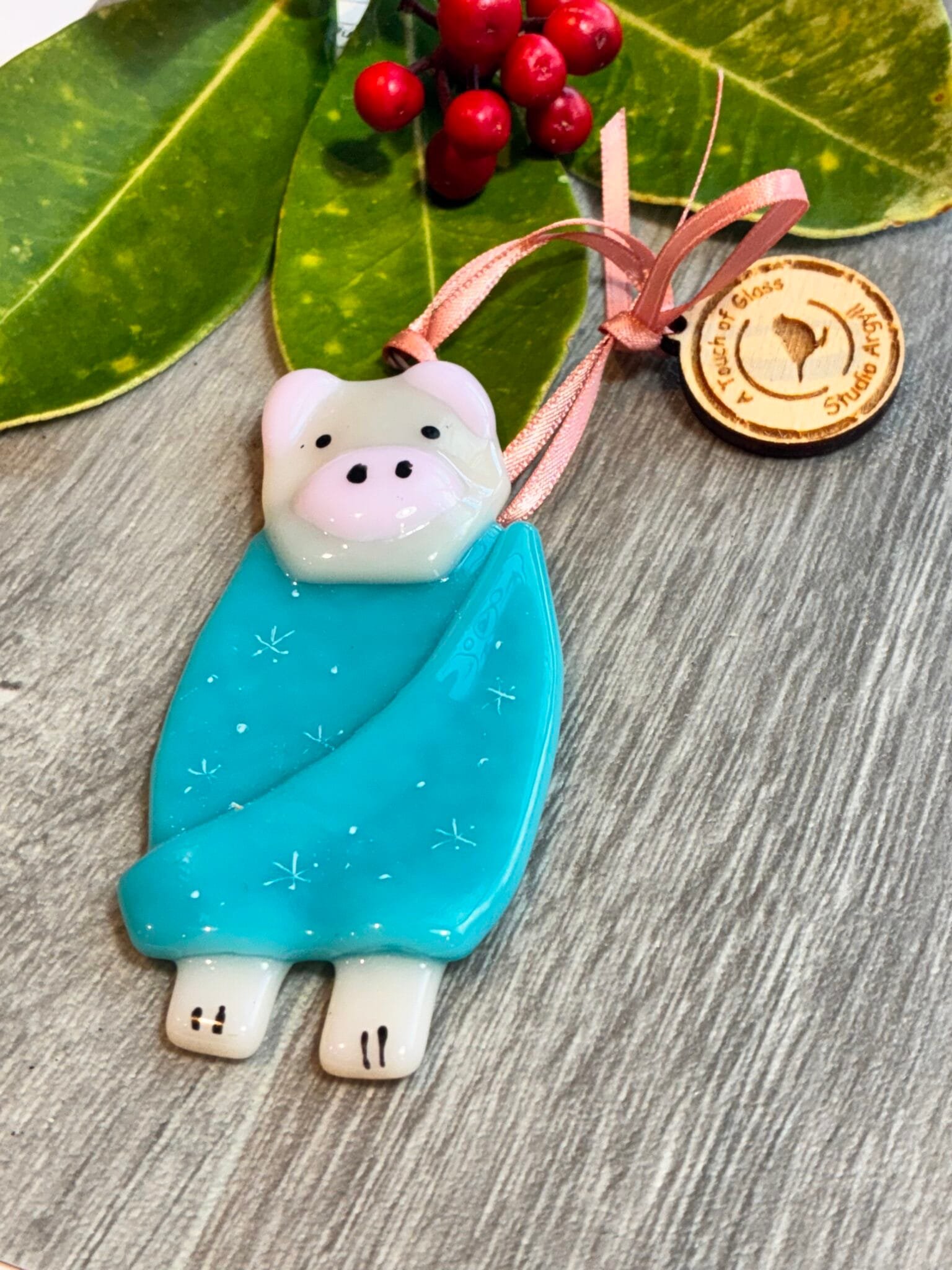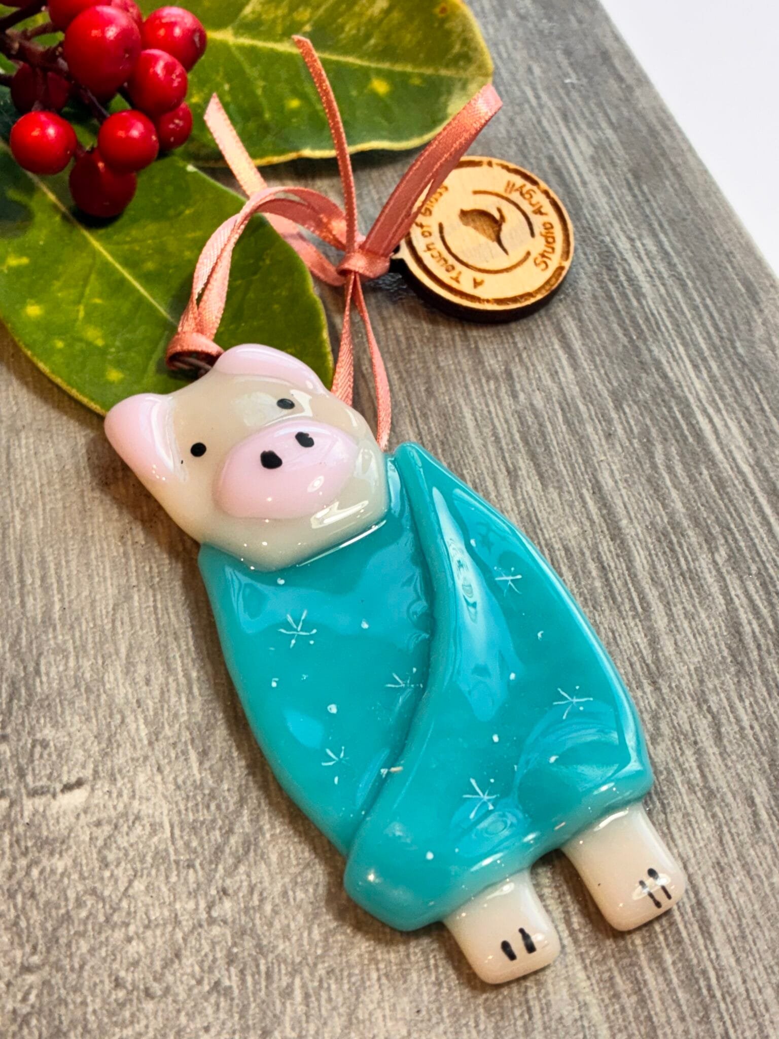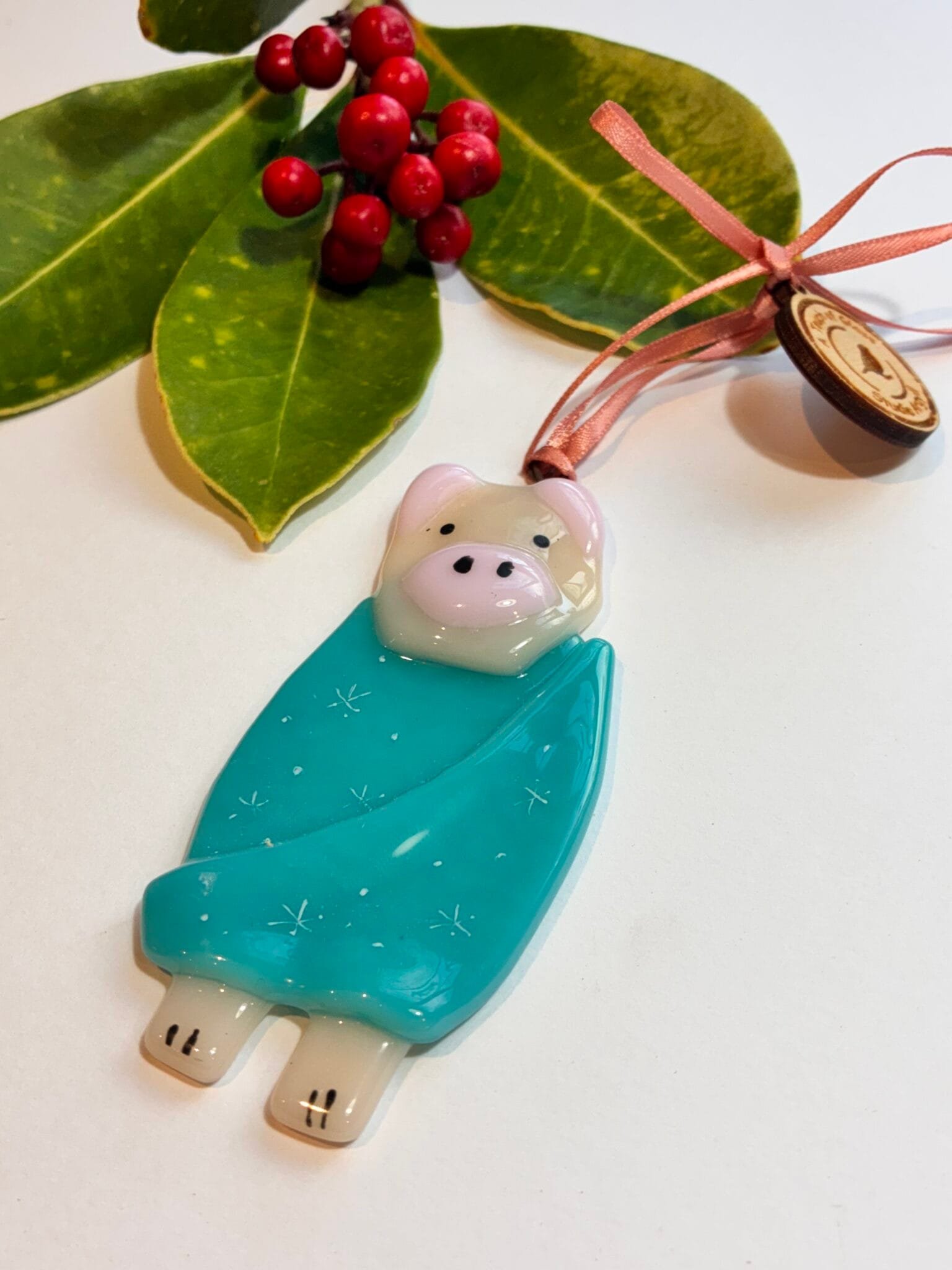 Fused Glass “Pigs in Blanket” Decoration, Christmas Ornament