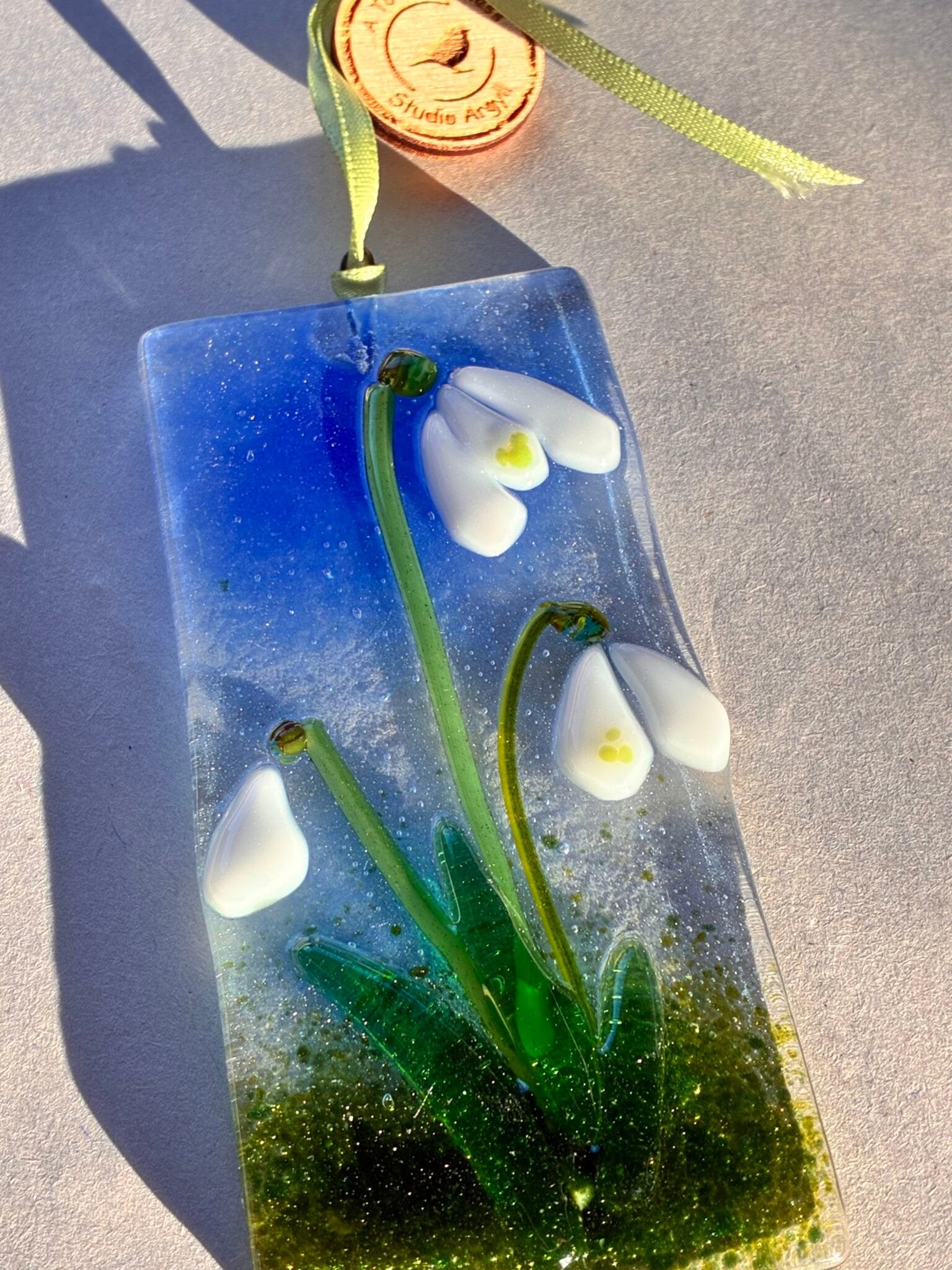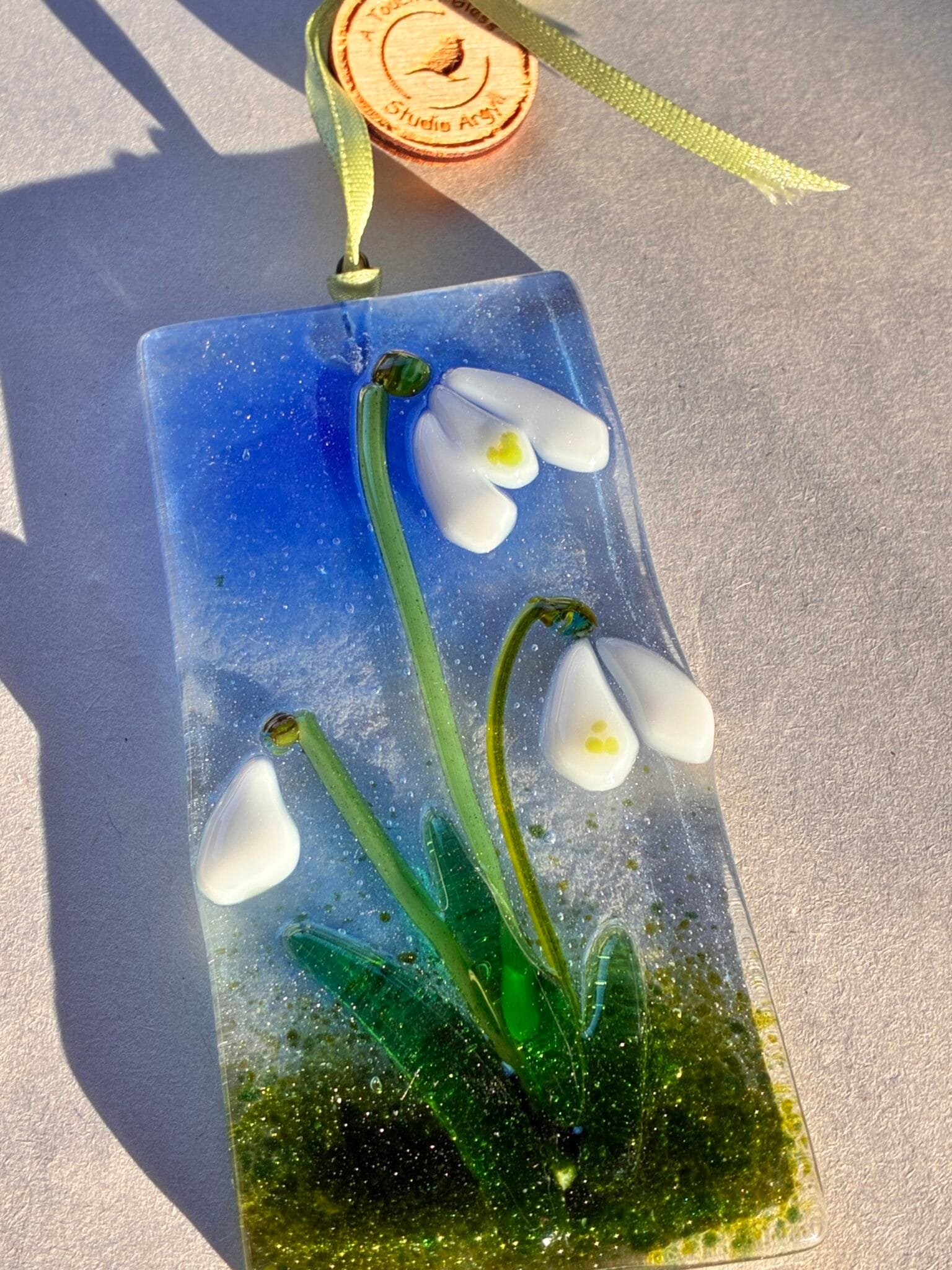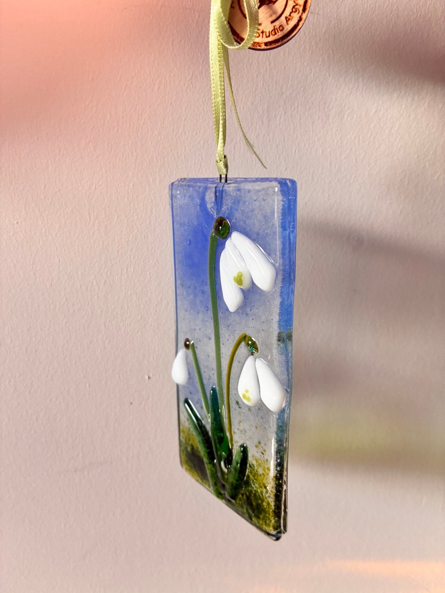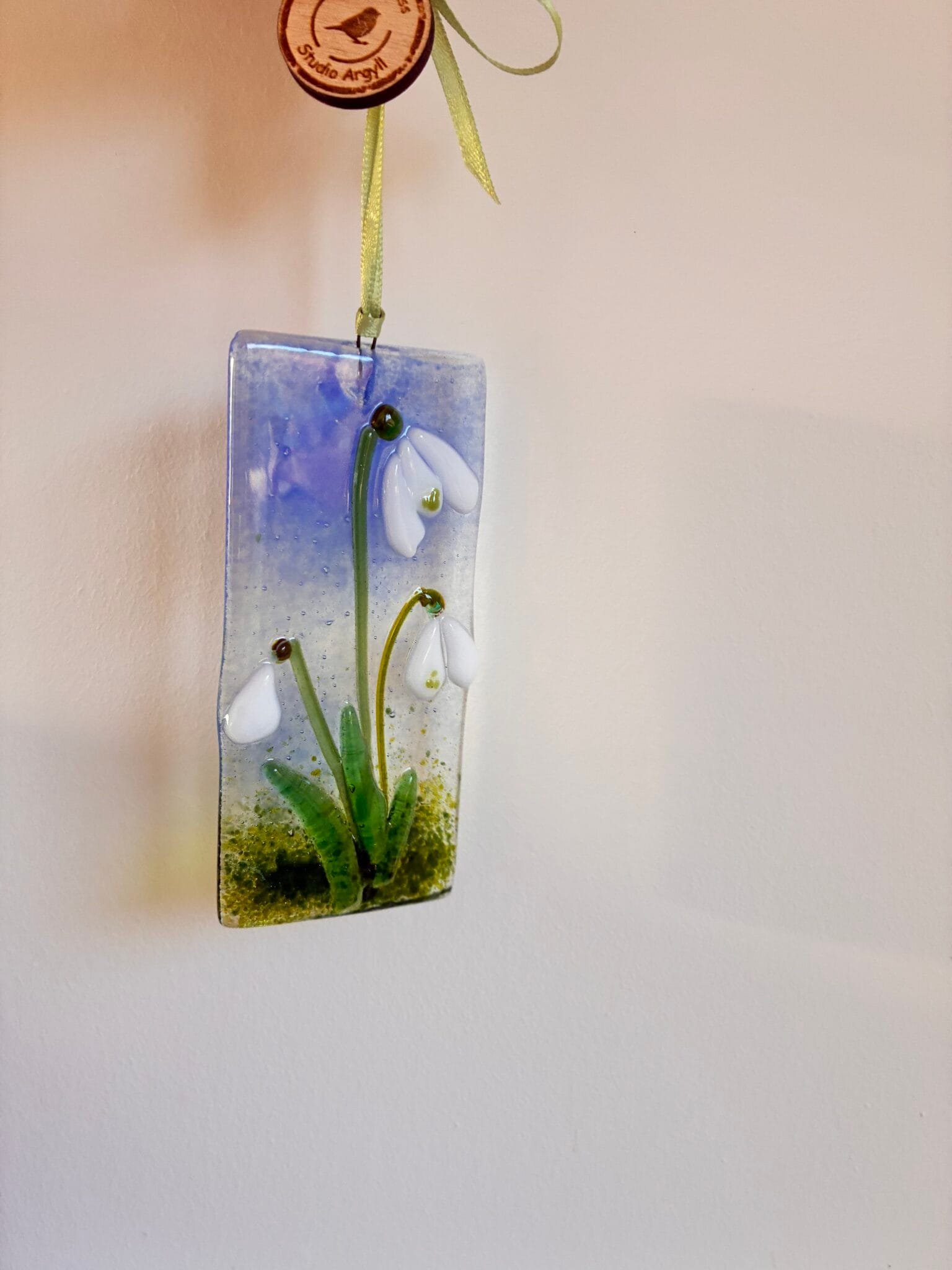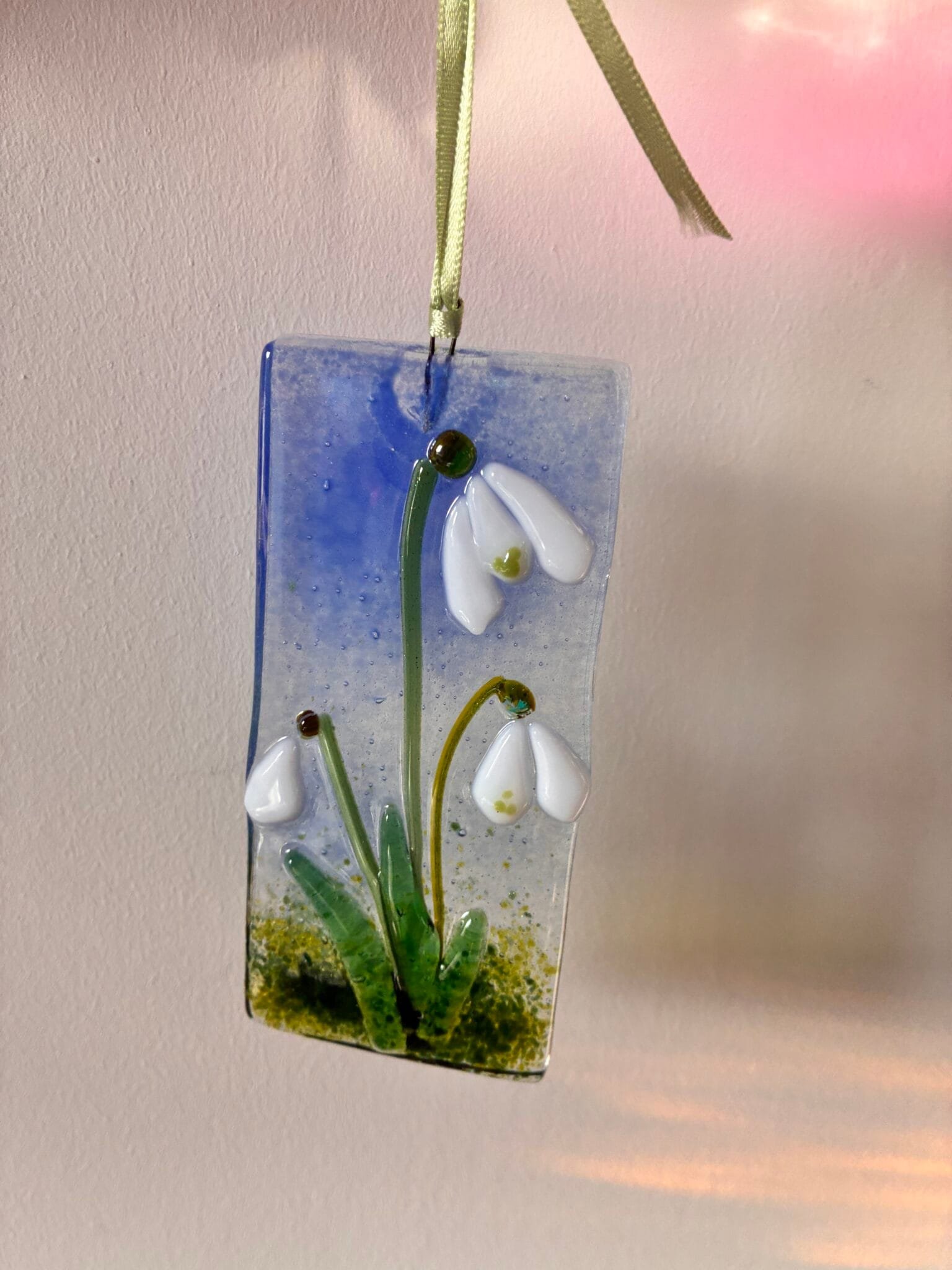 Snowdrops Fused Glass Hanger Large